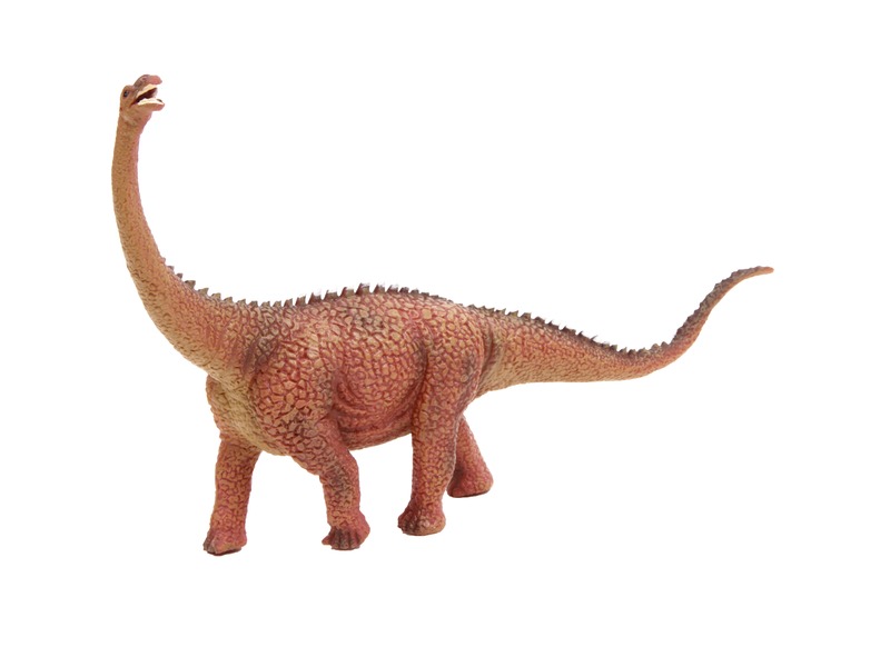 Barna növényevő dínófigura, fehér tüskékkel a hátán! Az Alamosaurus dinoszaurusz figura egy erős műanyagból készült, szépen kidolgozott dínó, barna színben. Az Alamosaurus növényekkel táplálkozott, és a nagyobb testű dinoszauruszok közé tartozott. Az Alamosaurus dinoszaurusz figura mérete: 19 cm.