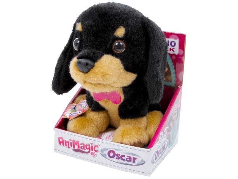 Indulj útnak hűséges barátoddal, Oscarral! Az Animagic Oscar kutyus készlet minden lehetőséget megad ahhoz, hogy izgalmas és persze felettébb aranyos kalandokat élj át. Az ember leghűségesebb barátja a kutyája, tartja a mondás. Oscarra ez az állítás szintén elmondható. Az édes kis plüss állat biztosan Veled lesz, bárhová is sodorjon Téged az önfeledt játszadozás. Oscar egy interaktív kiskutya, ha megsimogatod a buksiját a nyakörvén található rózsaszín csont felvillan, ezzel káprázatos látványt nyújtva. Emellett édes kutyaugatást is hallat. Valódi barátot találhatsz benne, aki minden játék alkalmával Veled lehet. Simogasd, kényeztesd és sétáltasd meg új kisállatodat. Oscarnak biztosan nagy sikere lesz barátaid körében is. A készletben megtalálod Oscart fekete és barna színkombinációban. A kutyus 3 db LR44 gombelemmel működik, melyet a játék tartalmaz. A játékban lévő elemek nem cserélhetőek. A plüss állat méretei 11 x 15 cm.