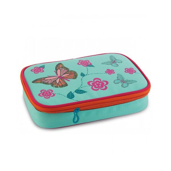 Ars Una: Butterfly többszintes, töltetlen, cipzáras tolltartó. Belül textillel bevont merev lapokkal, gumis kialakítással az írószerek tárolásához és egy cipzáras belső zsebbel.
