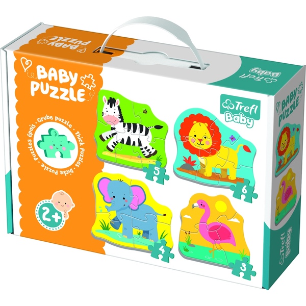 Első puzzle sorozat a legkisebbek számára. A puzzle kirakása számos képességet fejleszt, türelemre tanít, finomítja a kézmozdulatokat, fejleszti a precizitást, a koncentrációt és a megfigyelőképességet. A 4 mm vastagságú, nagyméretű karton puzzle elemek megkönnyítik a kis kezek számára az összeillesztést. A doboz 4 kirakót tartalmaz, melyek 3, 4, 5 és 6 darabosak. Kezdhetjük a kirakózást a legkönnyebb (3 darabos) figurával, majd haladhatunk az egyre bonyolultabbak felé, betartva ezzel a fokozatosság elvét. Kiváló manuális tréning és egyben remek szórakozás!