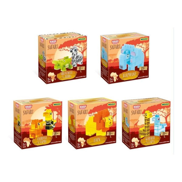A legkisebbek most egy igazi Szafariba csöppenhetnek bele a krokodil és zebra állatos építőkockákkal. A színes építő elemek fejlesztik a kicsik kézügyességét és kéz-szem koordinációját a szórakoztató játék közben. A két állat egyenként 18 db, mintás építőkockából építhető össze.