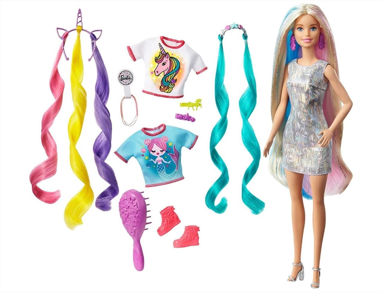 Az unikornis hajpánttal a szarv is a baba fejére kerül, jár hozzá fülbevaló és három színes hajdísz; míg a sellő tiara csillagos, kagylókkal és két türkiz hajdísz tartozik hozzá. A fiatal stylistok a fésűvel, a hajpántokkal és csatokkal még stílusosabbá tehetik Barbie megjelenését. Egy tartalék pár cipő teszi még változatosabbá a játékot.
