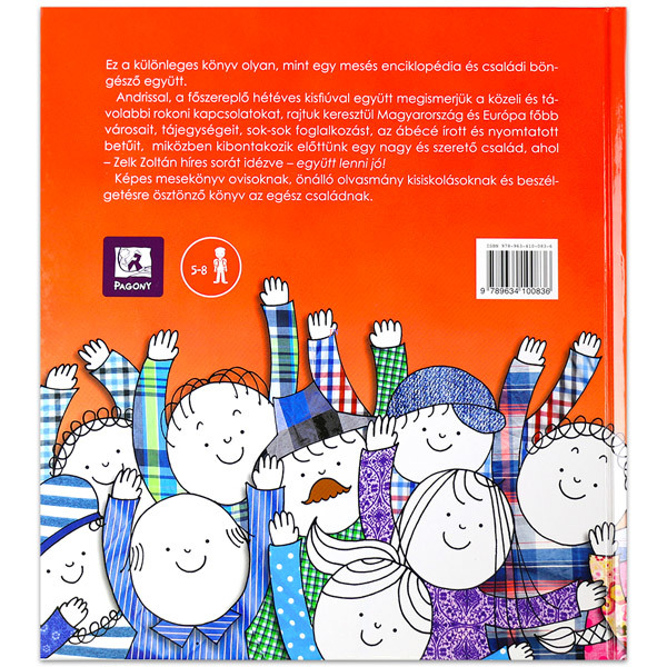Ez a különleges könyv olyan, mint egy mesés enciklopédia és családi böngésző együtt. Andrissal, a főszereplő, hétéves kisfiúval együtt megismerjük a közeli és távolabbi rokoni kapcsolatokat, rajtuk keresztül Magyarország és Európa főbb városait, tájegységeit, sok-sok foglalkozást, az ábécé írott és nyomtatott betűit, miközben kibontakozik előttünk egy nagy és szerető család, ahol – Zelk Zoltán híres sorát idézve – együtt lenni jó! Képes mesekönyv ovisoknak, önálló olvasmány kisiskolásoknak és beszélgetésre ösztönző könyv az egész családnak. A könyv oldalainak száma: 112, méretei: 22 x 24 x 2 cm.