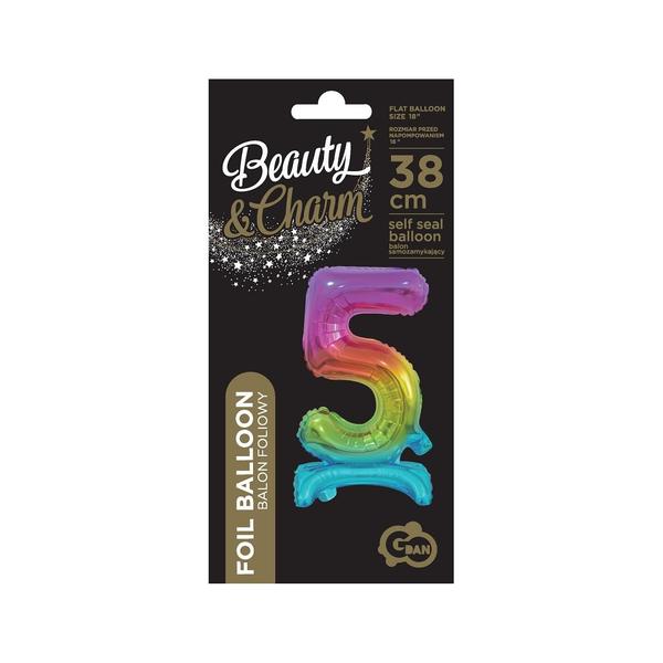 Beauty & Charm számos fólia lufi, 5-ös szám, szivárványszínű – 38 cm
