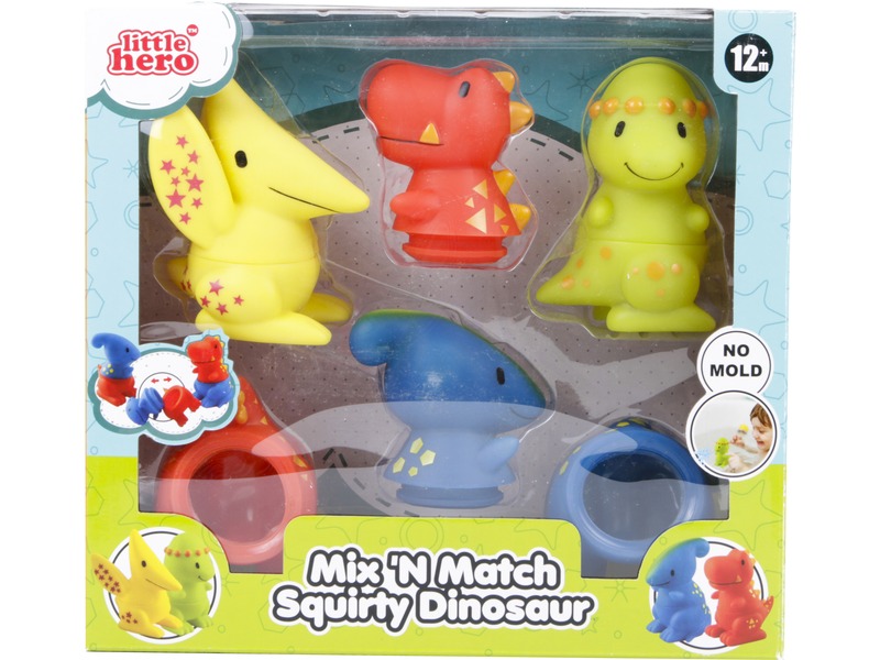 Pancsolj együtt a színes dinoszauruszokkal! A Dínó fürdőjáték 6 darabos készletben 4 darab szétszedhető dínó figurát találsz, akik lebegnek a víz felszínén. A játékok puha gumiból készültek, el tudod őket forgatni, és könnyen szét is lehet őket szedni. A figurák felsőteste és alsó része kombinálható, a vízben lebegő dínók élménnyé teszik a fürdést, amit sok gyerek nem szeret. A Dínó fürdőjáték 6 darabos készlet csomagolási méretei: 26 x 8 x 24 cm.