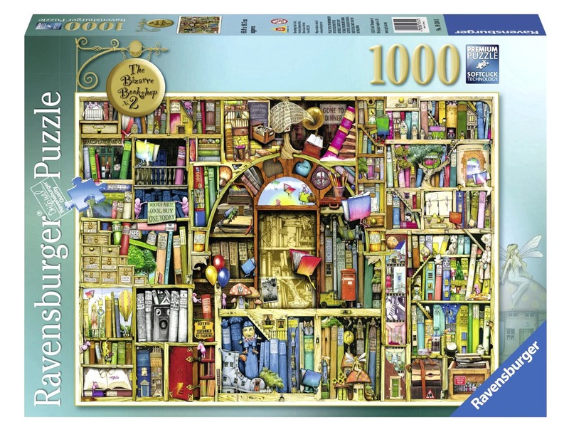 Colin Thompson festménye, ami igazi kihívást nyújt a puzzle játékosoknak! A Bizarr könyvesbolt 2 – 1000 darabos puzzle egy élnék színekkel készült, nagyon aprólékosan megrajzolt könyvespolcot ábrázol, rengeteg apró mintával. A puzzle nagyon pontosan illeszkedő mozaikdarabokból rakható össze, a játék próbára teszi a tapasztalt puzzle játékosok tudását is. A Bizarr könyvesbolt 2 1000 darabos puzzle kirakott méretei: 70 x 50 cm.