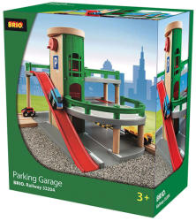 Élj át felejthetetlen kalandokat saját parkolóházadban! A BRIO Parkoló garázs 3 szinttel rendelkezik, ezzel még izgalmasabbá téve a játékélményt. A parkolóba autóval vagy akár vonattal is beérkezhetsz. Használd a fából készült felvonót és fedezz fel minden emeletet! A második emeleten az autószállító vagonokra illesztheted járműveidet a lehajtható rakodóajtó segítségével. A legmagasabb emeleten pedig egy piros csúszda segítségével tudsz legurulni, így eljutva a kezdő szinthez. Gurítsd és szállítsd autóidat a lehető legkülönbözőbb módokon és alkoss izgalmas történeteket vagány parkolóházadban! A készlethez járó rakodóautóval könnyedén elszállíthatod a rád bízott rakományt is. A BRIO Parkoló garázs tartalmazza az összeállítható 3 szintes épületet felvonóval, 2 darab játékautót, egy teherszállító vagont és a további kiegészítőket. A játék további BRIO készletekkel bővíthető.
