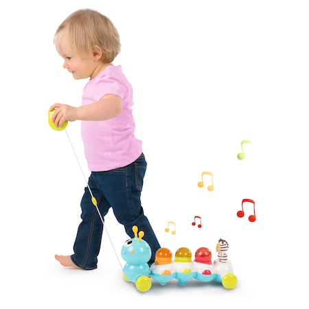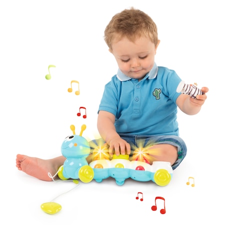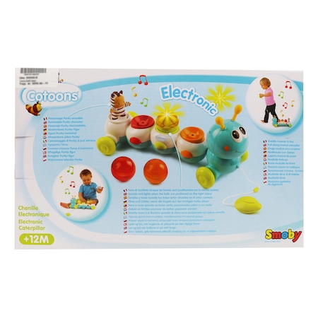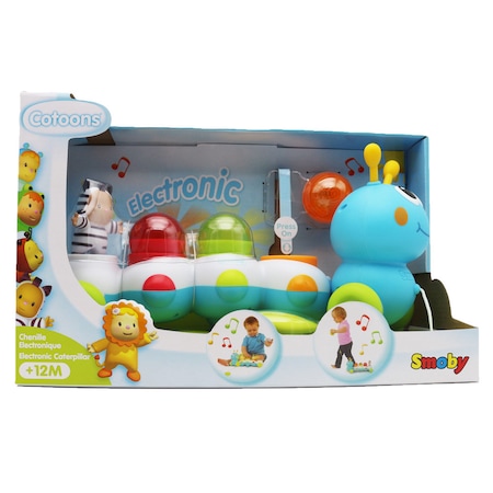 A Smoby: Cotoons zenélő hernyó a kisgyerekek jó pajtása lesz. Készségfejlesztő tulajdonságaival segíti a baba fejlődését, a koordinációs képességét, a finommotoros mozgásokat, valamint megtanulja megkülönböztetni az alakzatokat. A hernyón lévő madzag segítségével a gyerkőc húzhatja maga után, ha pedig a hátán lévő golyócskákat jó helyre teszi, cserébe a kis hernyó vidám dallamokkal és fényekkel ajándékozza meg őt.