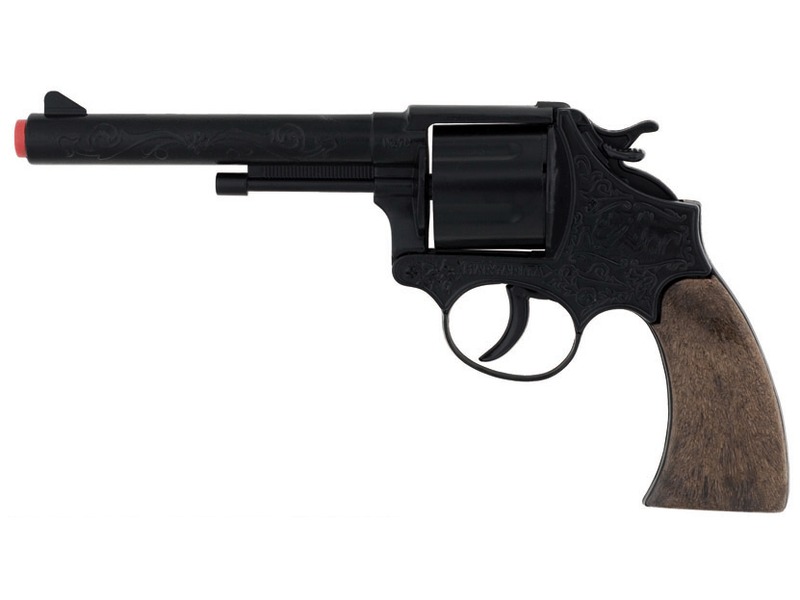 Cowboy jelmezekhez használható fém revolver! A Margarita patronos pisztoly egy elegáns, keskenyebb kivitelű forgótáras fegyver, amit 12 darabos rózsapatronnal tudsz megtölteni. A pisztoly fémből és műanyagból készült, a töltött pisztolyt érdemes kültéren használni, mert hangosan tud pukkanni. A csomagolás a patront nem, csak a fegyvert tartalmazza. A Margarita patronos pisztoly mérete: 22 cm.