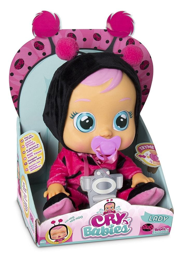 A szép Lady babának a Cry Babies kollekcióból szüksége van valakire, aki gondoskodik róla! Bújj oda hozzá, adj neki cumit és máris megnyugszik. A Cry Babies valódi könnyeket áraszt, és sírós hangot ad ki közben. A könnyezéshez szükséges víztartó a baba fejében található, működéséhez 2 db AAA elem szükséges, amit a csomagolás nem tartalmaz.