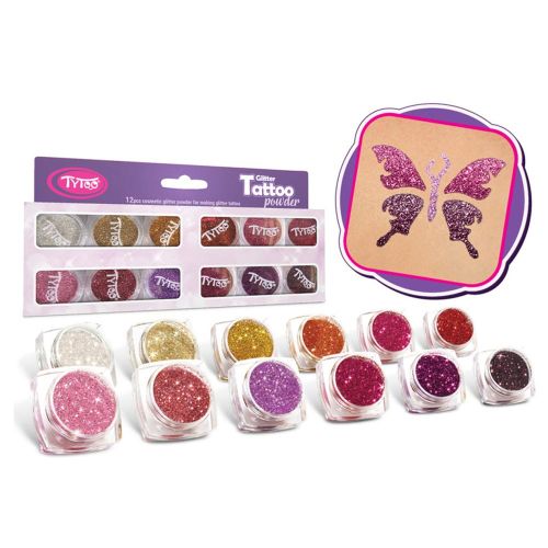 Tytoo Csillámpor szett 12db Legszebb meleg színek válogatása Gyönyörű színpompás csillámtetoválásokat készíthetsz a TyToo csillámpor szettek segítségével! Ebben a válogatásban a legnépszerűbb meleg színeket találjuk. A finom szemcséjű kozmetikai csillámporok jól beleragadnak a mintádba, ezáltal tartós és csillogó mintád lesz. A csillámport csillámtetoválás ragasztóval tudod rögzíteni a bőrön. A 2,5 ml-s tégelyes kiszerelés 60-80 minta kifestésére elég. A szett tartalma: 12 db 2,5 ml-es csillámpor (Bíbor, Barna, Piros, Mályva, Világosbarna, Arany, Sötétmályva, Lazac, Óarany, Világos barna, Babarózsaszín, Gyémánt)