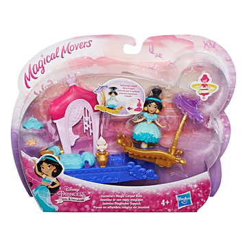 A gyerekek most elkísérhetik Jázmin hercegnőt egy varázslatos kalandra a mágikus szőnyegen! Jázmin édes kis madár barátja körbe repülhetik az égboltot! Ha pedig elfárad a nagy kalandban, lepihenhet párnázott ágyában. A Disney hercegnők kis királyság sorozat részeként most a te kislányod is megszerezheti kedvenc hercegnős játékszettjét, melyben Jázminra jellemző egyedi kiegészítőket találhat. Mindegyik Magical Movers hercegnőt és játékszettet összegyűjtve még izgalmasabb lesz a játék. Csomagolási méretek: 23 x 7 x 30 cm.