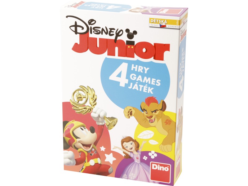 Játsszatok négy különféle társasjátékot a legkisebb Disney figurákkal! A Disney junior 4 az 1-ben társasjáték egy nagyobb készlet, amivel Arany kupa, Fekete Péter, Ki nevet a végén és Lottó játékokat lehet játszani. A kártyalapok, memória lapok és a játéktábla is a legnépszerűbb fiatal Walt Disney mesehősökkel vannak díszítve, a Disney junior 4 az 1-ben társasjátékkal akár 6 gyerek is játszhat! A készlet tartalma: 1 kétoldalas játéktábla, 24 bábu, 1 színes dobókocka, 25 Fekete Péter kártya, 4 tábla, 24 kártya, játékszabály.