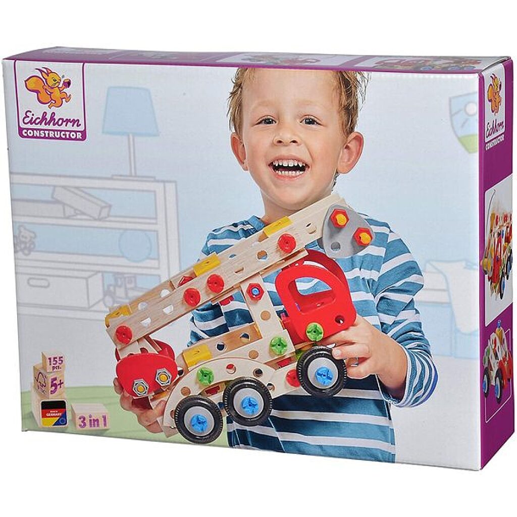 A 155 darabos Eichhorn Constructor építőjáték szettel könnyedén összerakható egy vidám, színes tűzoltó mozgatható létrával, de a lehetőségeknek természetesen csak a fantázia szabhat határt. A termék kiváló minőségű, az elemek tökéletesen illeszkednek egymáshoz a fából készült csavarokkal, így az összerakás után akár játszani is lehet a járművekkel. A készlet tartalmazza az építéshez szükséges, gyerekkezekre tervezett csavarhúzót is.