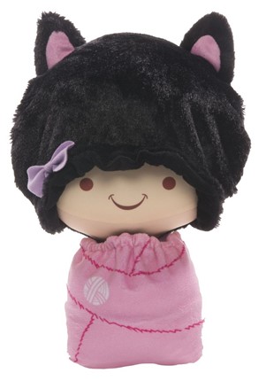 Az elbújós Zuri cicafüles sapkájában, gombolyagos hálózsákjával és cicás ruhácskájával igazán bájos kis csajszi.