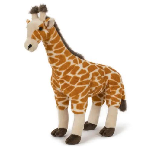 Prémium minőségű, Semo márkájú, 38 cm-es élethű álló plüss zsiráf, műanyag szemekkel.