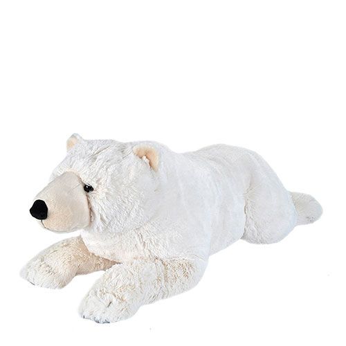 Prémium minőségű, Wild Republic márkájú, 76 cm-es élethű, óriás XXL méretű fekvő plüss jegesmedve, műanyag szemekkel.