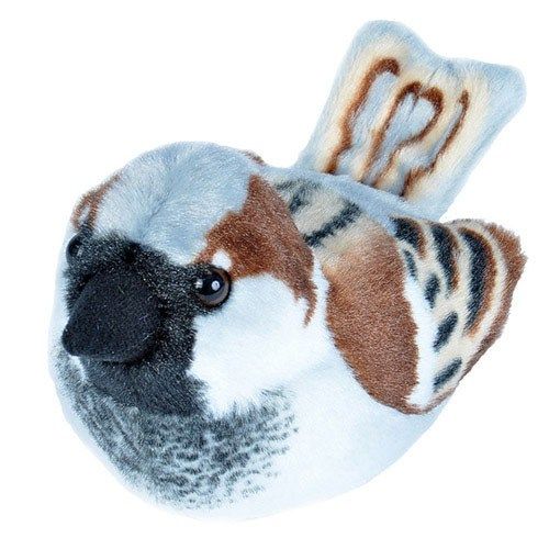 Prémium minőségű, Wild Republic márkájú, 14 cm-es élethű plüss házi veréb hanggal, műanyag szemekkel.