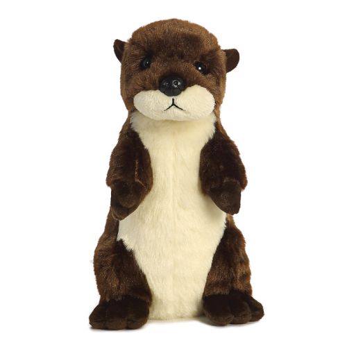 Prémium minőségű, Aurora márkájú, 20 cm-es élethű, ülő plüss folyami vidra, műanyag szemekkel és orral.