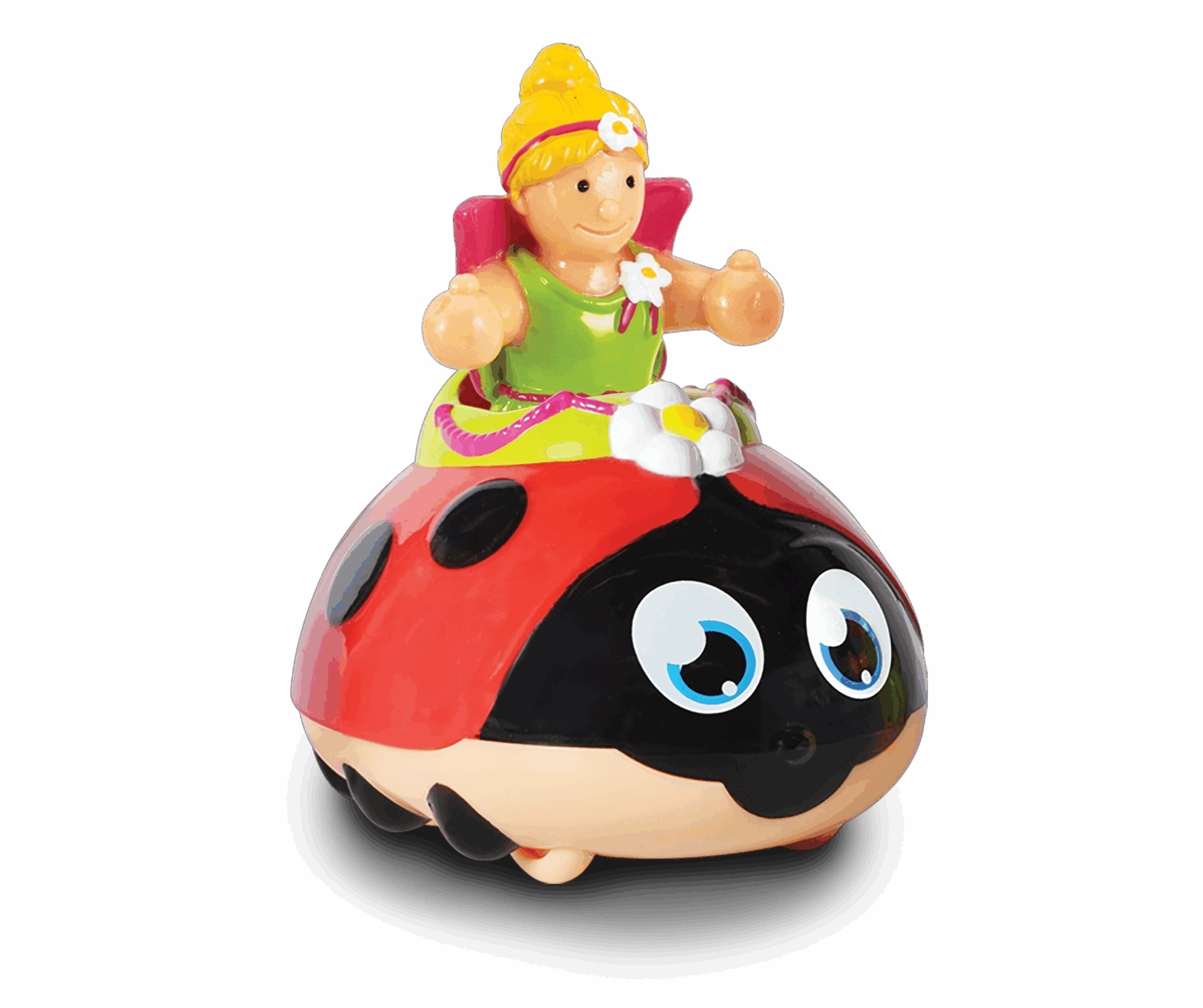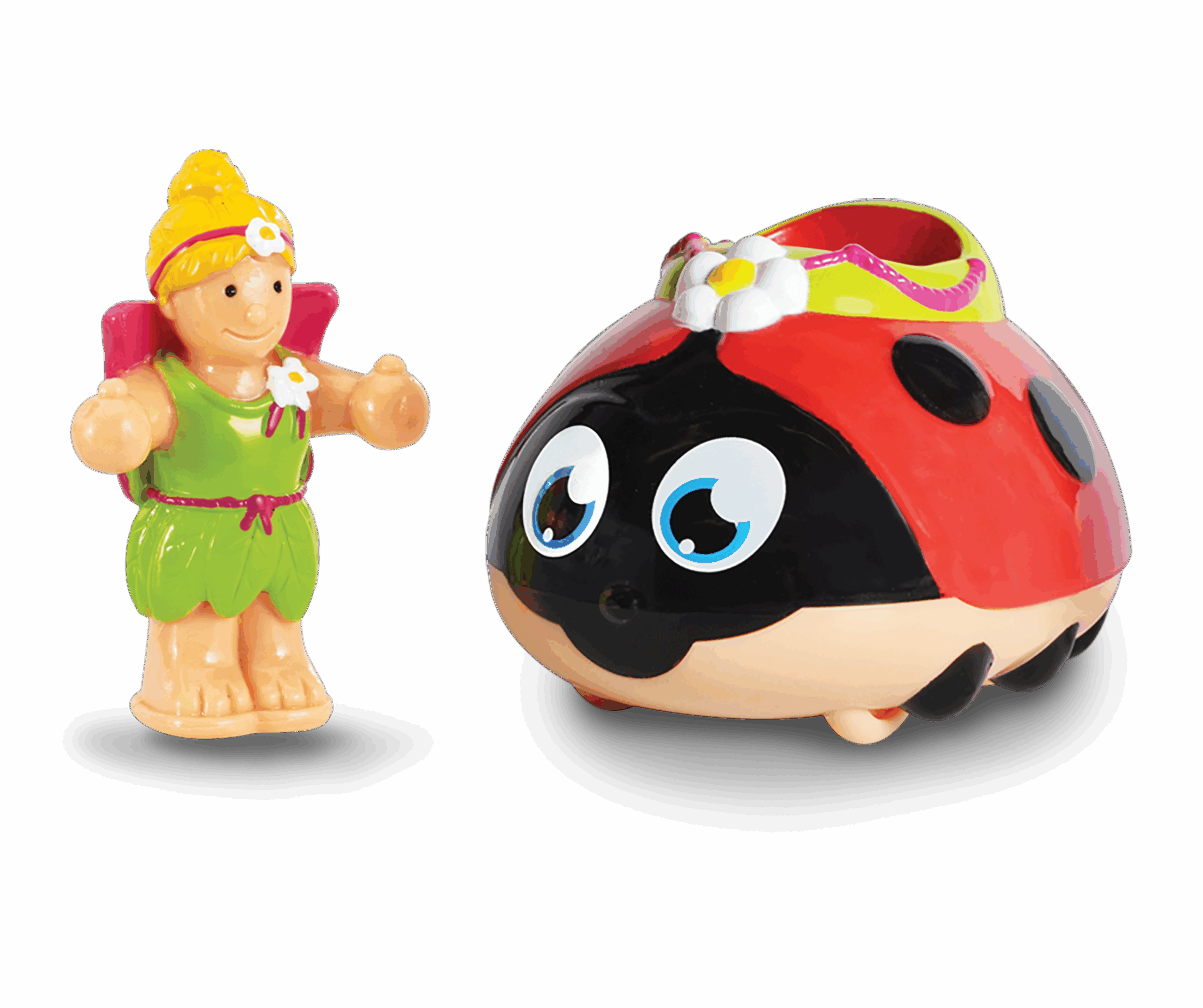 Lily, a katicabogár és tündér barátnője együtt gyorsan odaérnek bárhová! Nem is kell repülniük, mert a katicabogár rejtett kis kerekein varázslatosan elgurul, és hátán a tündér is kényelmesen elhelyezkedhet az utazáshoz.