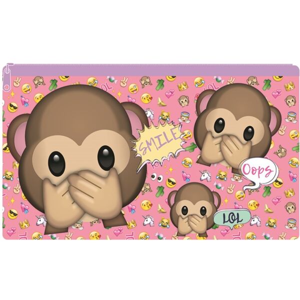 Praktikus, bedobós tolltartó cipzárral, vicces Emoji és majom mintával díszítve. Mérete: 24 x 16 cm.