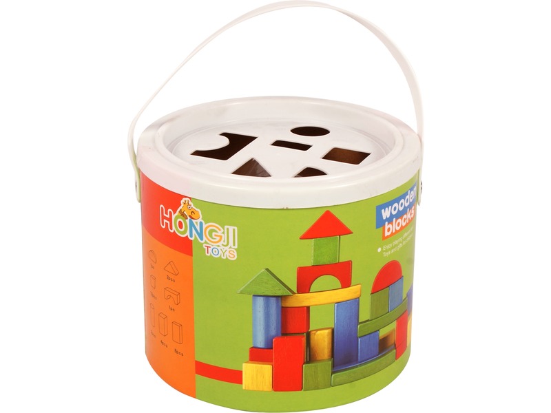 Alkoss csodás építményeket színes fa építőkockákkal! Az Építőkocka formaválogató hengerben 30 darabos készlet piros, sárga, zöld és kék színű építőelemeket tartalmaz, amikből épületeket, járgányokat tudsz összeállítani. A játék különlegessége, hogy a tároló vödör tetején formaválogató rostát találsz, így az elpakolás is fejleszti a kézügyességedet! Az Építőkocka formaválogató hengerben 30 darabos készlet csomagolási méretei: 15 x 18 cm.