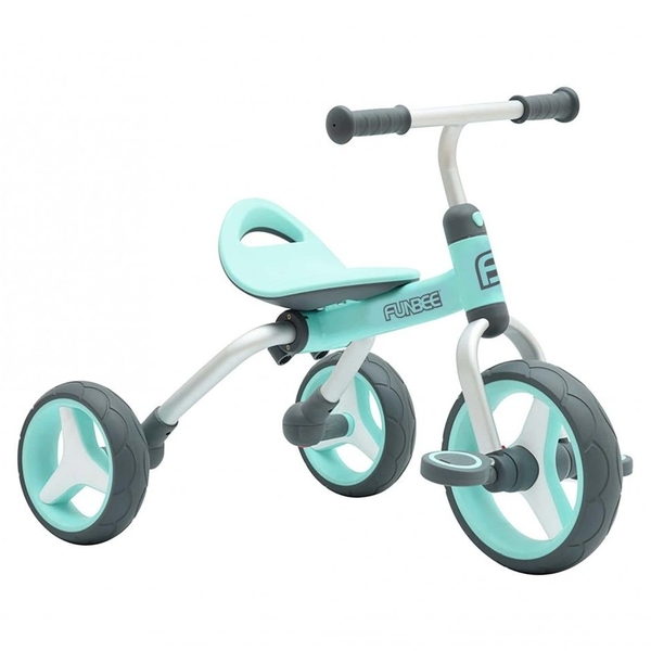 A Funbee 2 az 1-ben tricikli és lábbal hajtós kis bicaj ideális választás a legkisebbeknek. Használata során fejlődik a gyerekek motoros készsége a dupla hátsó kerekek pedig kellő biztonságot nyújtanak. A tricikli lábbal és a felszerelhető pedállal is hajtható. A pedálok az ülés alatt tárolhatóak, így akár út közben is felrakhatóak. Bel-és kültéren is egyaránt használható, praktikus mérete miatt bárhova magunkkal vihetjük. A modern külső és pasztell szín még egyedibbé és különlegessé teszi a triciklit.