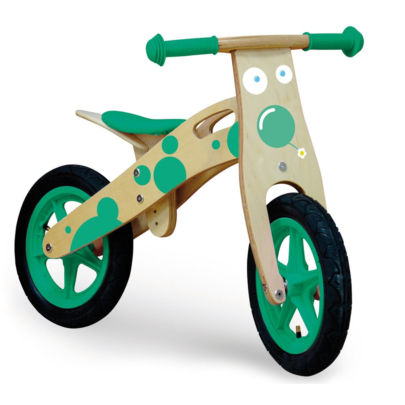 Funbee fából készült futóbicikli, felfújható gumi kerekekkel és kényelmes kialakítású, puha üléssel. Maximális terhelhetősége: 25 kg. Tökéletes választás azoknak a gyerekeknek, akik biciklizés előtt állnak de még szívesen robognak két keréken. Fejleszti a gyermekek egyensúly érzékét, ez által még könnyebb lesz a kerékpárra való áttérés. Kerék átmérő: 30 cm.