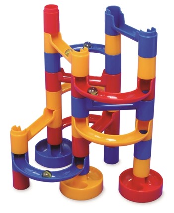 Építsd össze ezt a műanyag golyópályát, majd indítsd el a golyókat az építmény tetejéről. Vajon melyik golyó fog hamarabb leérni? A szett 30 építőelemet tartalmaz.