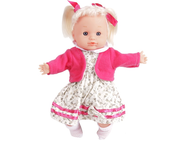 Legyél az anyukája a szőke, copfos babának! A Hajas játékbaba virágos ruhában egy puha, átható kék szemekkel készült játékbaba, virágos ruhába, és rózsaszín kabátba öltöztetve. A baba haját két masni tartja copfokban, a babával kedvedre játszhatsz, ölelgetheted, és gondoskodhatsz róla. A játékbabával megtanulhatod, hogyan kell gondoskodni egy picurról, a játék együtt használható más 30 cm-es játékbaba készletekkel, kiegészítőkkel is. A Hajas játékbaba virágos ruhában mérete: 30 cm.