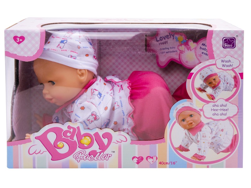 Gondoskodj a már fürge babádról, és fogócskázzatok! A Hangot adó kúszó baba igen fürge már, így boldogan tudtok kergetőzni. Játssz hát a kúszó-mászó, fejet mozgató, pislogó, síró és nevető kisbabáddal! A Hangot adó kúszó baba működéséről 3 darab AA típusú ceruzaelemmel gondoskodik. A baba mérete kb. 40 cm. A játékot 3 éven aluliaknak nem ajánljuk.
