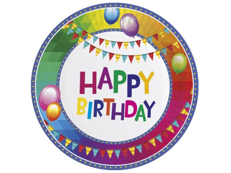 Happy Birthday papírtányér 8 darabos – 23 cm