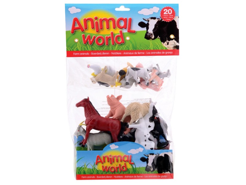 Rendezd be a farmot műanyag állatfigurákkal! A Háziállat 20 darabos készlet baromfi, tehén, szamár, malac és mindenféle állat műanyag figuráját tartalmazza, akik a gazdaságban élnek. Az állatok szépen kidolgozottak, és bármilyen állatos, farmos játékkal együtt használhatók. A Háziállat 20 darabos készlet állatainak mérete: kb. 9 cm.