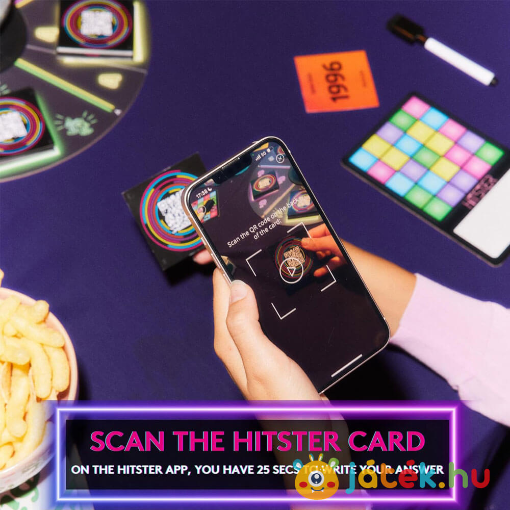 – hozzáférés a Hitster alkalmazáshoz, amely a kártyák QR-kódjait leolvassa és megszólaltatja a dalokat.