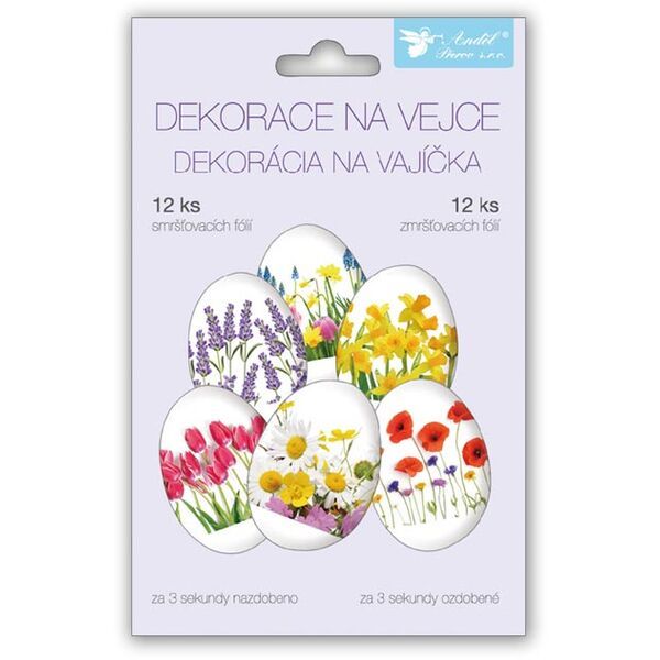 Húsvéti tojásdíszítő fólia. Használata egyszerű, a lehűtött, főtt tojásra rá kell helyezni a kiválasztott fóliát, majd forrásban lévő vízbe kell mártani 3 másodpercig. Mérete: 130 mm x 200 mm x 1 mm. A csomag 12 db virágos fóliát tartalmaz.