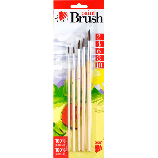 Póniszőrből készült végű, natúr nyelű ecset készlet. A készletben 5 db különböző méretű ecset található.