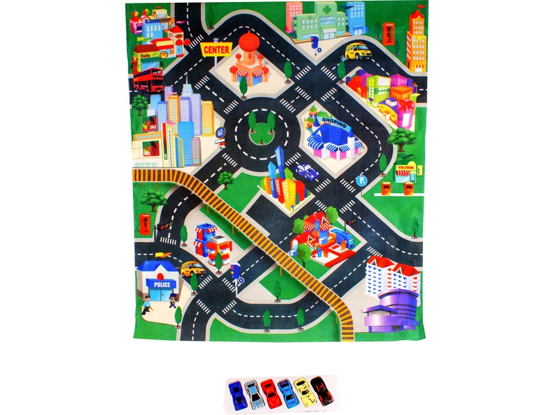 Told a kisautókat az autóút mintás szőnyegen! A Farm játszószőnyeg autókhoz egy műszálas szövetből készült szőnyeg, amin a kedvenc autóidat, mezőgazdasági gépeidet tologathatod. A szőnyeg egy úthálózatot és réteket ábrázol, tologasd rajta a munkagépeket, rendezd be rajta a saját farmodat! A Farm játszószőnyeg autókhoz bármilyen kisautóval együtt használható.