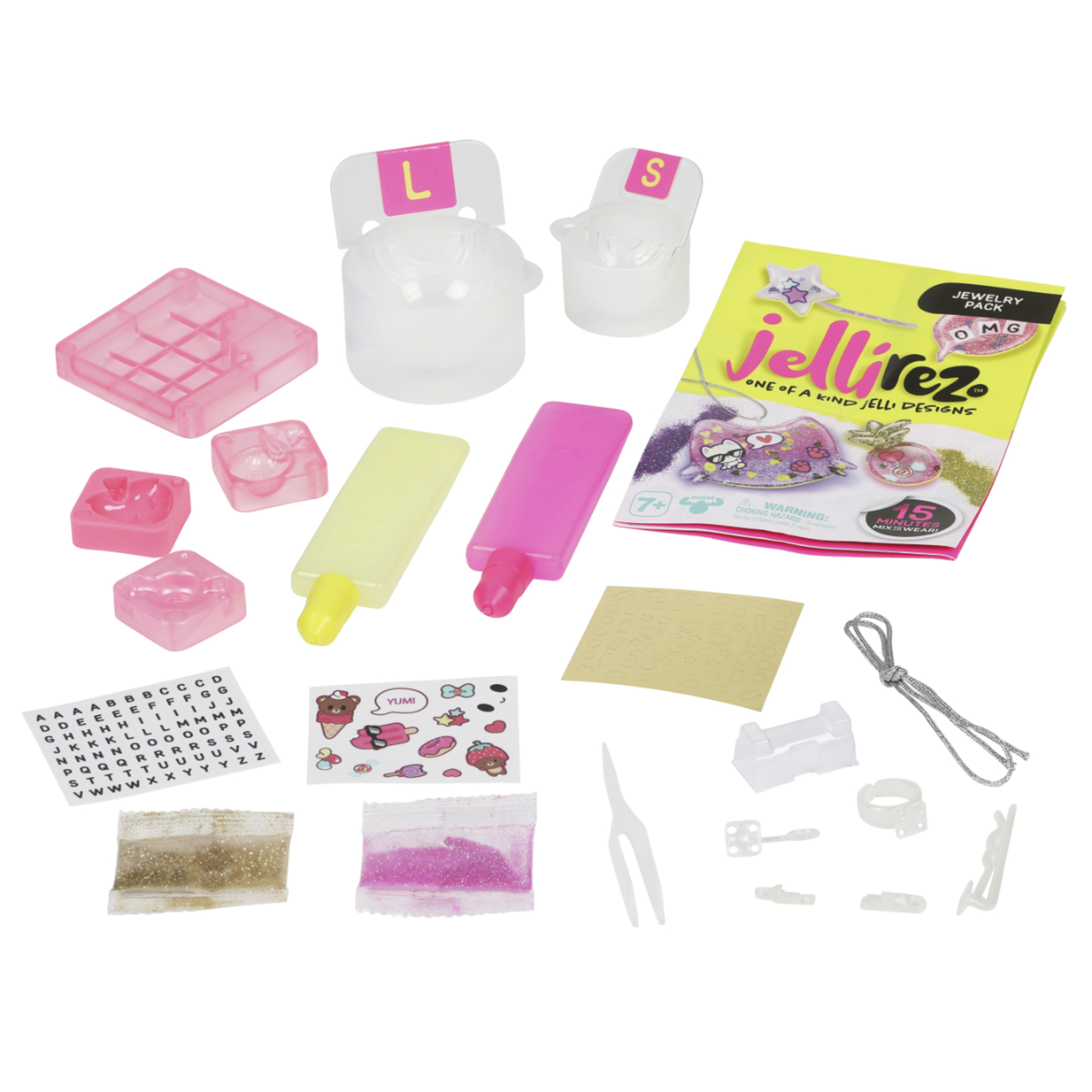 A gyerekek most rendkívül könnyen, mégis izgalmas módszerrel készíthetnek csodás ékszereket. Egyedi nyakláncok, karkötők, gyűrűk és hajdíszek készülhetnek mindössze 15 perc alatt, egy három lépésből álló eljárással. Össze kell keverni a zselés és csillogó anyagokat, formába önteni őket, kidekorálni a matricákkal, várni 15 percet, és büszkén viselni az alkotást! Tartalom: zselés összetett palackok, nagy formák, közepes formák, kis formák, nagy tál, nagy lapát, közepes tál, közepes lapát, kis tál, Kis lapát, Gyűrűk, Hajcsat, Karkötőhúzók és alkatrészek, Nyaklánchúzók és -alkatrészek, Csillogó tasakok, Dekoratív lapok, Csipesz pár, Használati útmutató