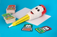 Ezzel a folyton mozgó, kerge tollal játszva fejlődik a kreativitásotok, a képzelőerőtök és a csapatmunkában való jártasságotok. Alkossatok két csapatot, dolgozzatok együtt – az óra ellenében – a csapattársakkal, és tippeljétek meg, hogy vajon milyen Tárgy/Élőlény és Leírás kártyákat húzott a rajzolótok, amit a kerge cerkával egy rajzban próbál egyesíteni, és veletek így kitaláltatni – miközben persze jókat kacagtok magatokon! A Kergecerkát beállíthatjátok könnyű módba, vagy átkapcsolhatjátok haladó nehézségi szintre is. Felkészültetek? Akkor induljon a Sicc és Tipp! A játék tartalma: – Kergecerka rezgő toll, két nehézségi fokozattal – 1 perces homokóra – 75 db Leírás kártya, – 75 db Tárgy/Élőlény kártya – 2 db letörölhető filc – 2 db letörölhető rajztábla A játék működéséhez 3 db AAA / LR03 elem szükséges (elemeket a játék nem tartalmaz).