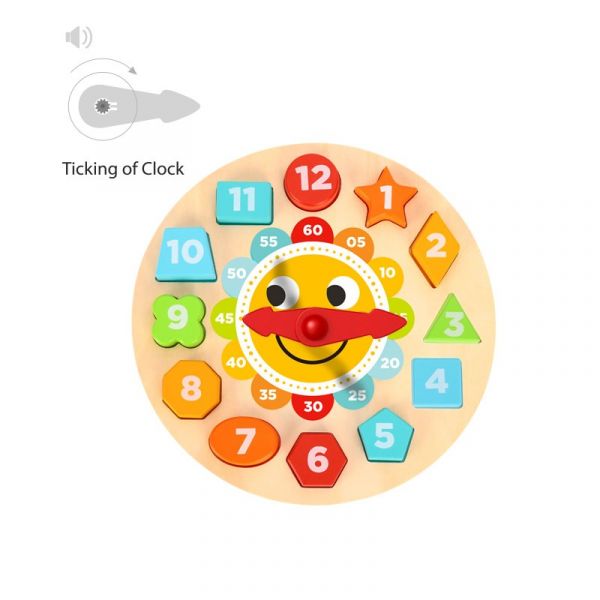 Ezzel a játékkal gyermeked egyszerre sajátíthatja el a számok és formák világát, továbbá az órával is megismerkedhet. A különböző elemeket a megfelelő helyre kell illeszteni. Ezzel az elfoglaltsággal a gyermekek fejlesztik logikai és finom motoros készségüket. A mutató tekeréskor kattogó hangot ad ki. Termék mérte:22x22x2.3cm