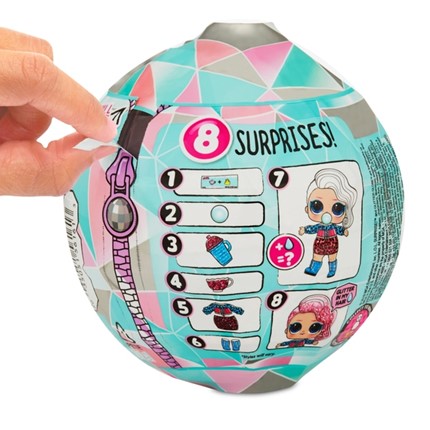 A L.O.L Holiday Glitter gömbben található 8 db meglepi: