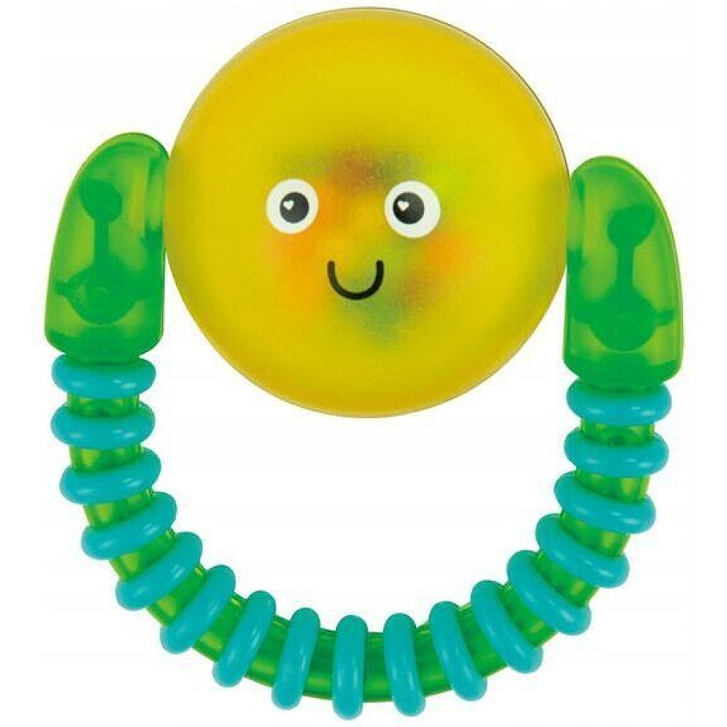 A mosoly kölcsönössé válik, ha az apróság megkaparintja ezt a cuki, mosolygós csörgőt. A vizuális és auditív észlelést fejlesztő játék remek segítséget nyújt a világ felfedezésében. A feltűnő színek és a kis bogyócskák a belsejében remekül lekötik az aprócska gyerekek figyelmét.