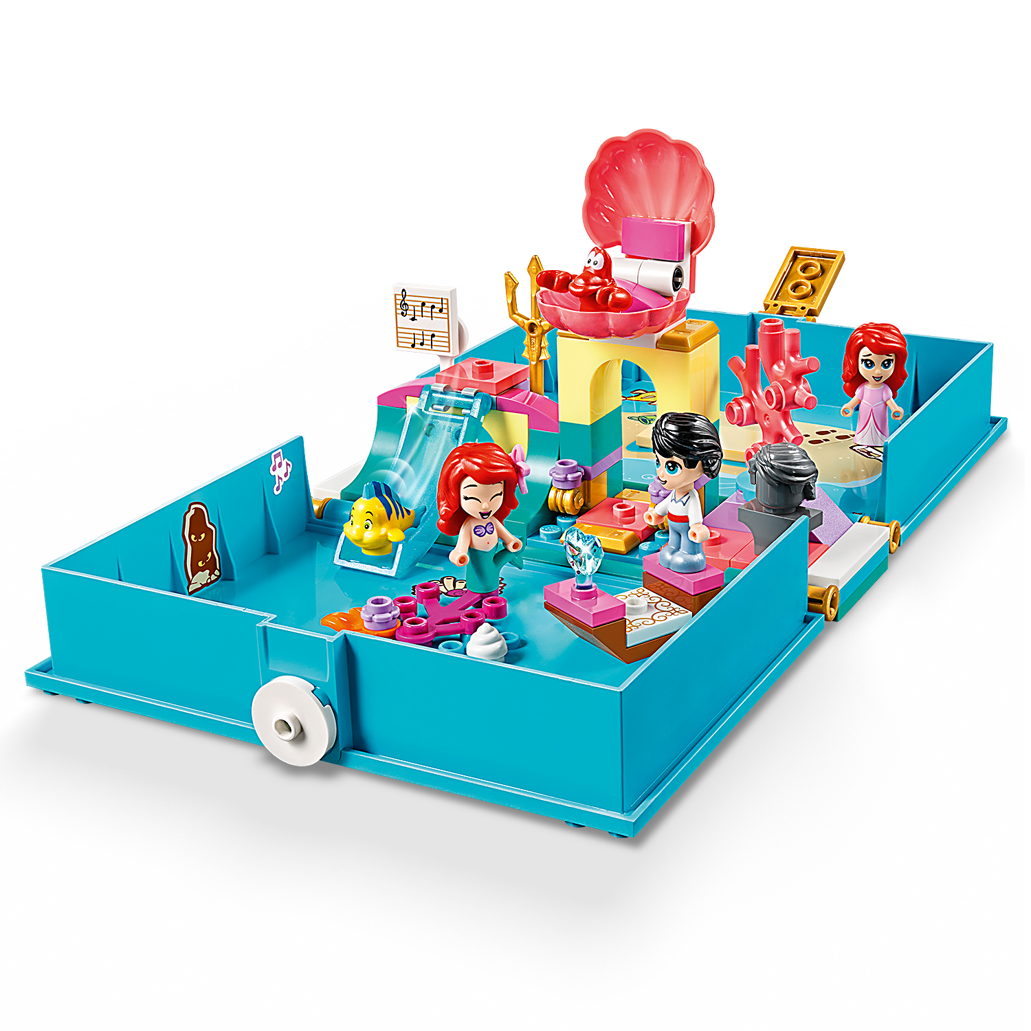 A gyermekek imádni fogják A kis hableány mini világát, mely tartalmazza Disney Ariel víz alatti kastélyát, 3 minifigurát és 2 LEGO® Disney állatfigurát is.