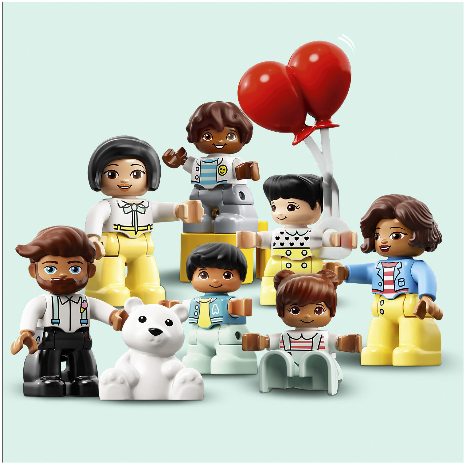 Vidd el kisgyermeked egy fantáziadús útra a LEGO® DUPLO® Városi kalandok Vidámparkba 10956, ahol felfedezhetitek a magával ragadó, szórakoztató és a gondolkodást fejlesztő látványosságok csodálatos sokaságát. Családi szórakozás a vidámparkban! Csatlakozzatok 7 DUPLO szereplőhöz – 2 nőhöz, 1 férfihez és 4 gyermekhez – a színes, magával ragadó, és szórakoztató fejlődést nyújtó vidámparkban! Ez a sokoldalú játék tartalmaz csúszdákat, amiken lecsúszhattok, egy mechanikus körhintát, egy nagy óriáskereket 3 színes, működtethető kabinnal, egy vonatot, amivel körbemehettek a parkon, megvásárolható hot dogokat, valamint fagylaltot, fényképet, lufikat, minitortákat, seprűt és egy plüssmacit is. Még egy klassz, színváltós „szivárványfény” is vár rátok, amivel eredeti, vidámparkos hangulatot teremthettek. Kézzelfogható, tanulást segítő játékok kisgyermekeknek A LEGO DUPLO játékok egyenesen az óvodások kezébe adják a végtelen szórakozás, az önkifejezés és az örömteli tanulás lehetőségét.