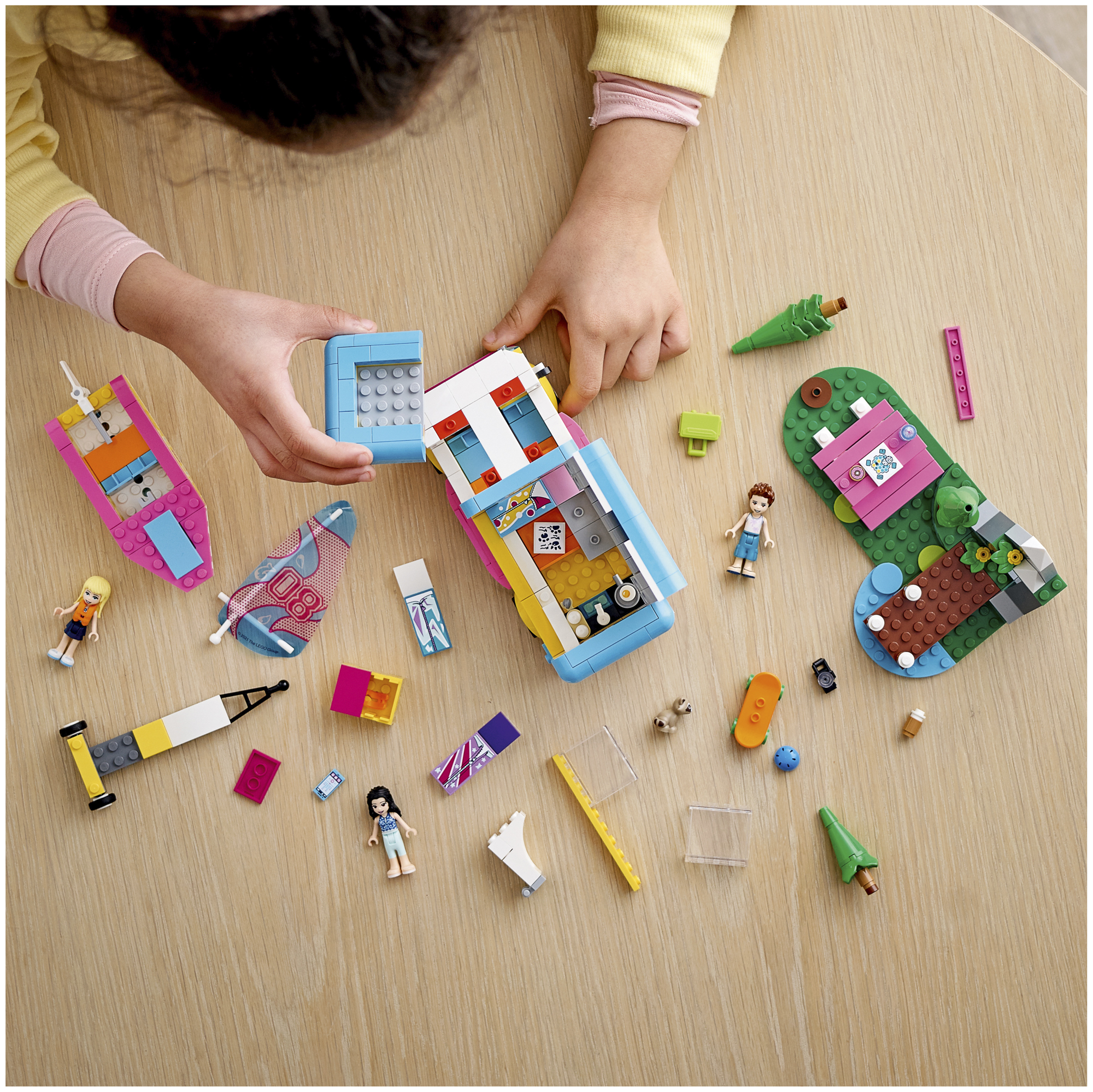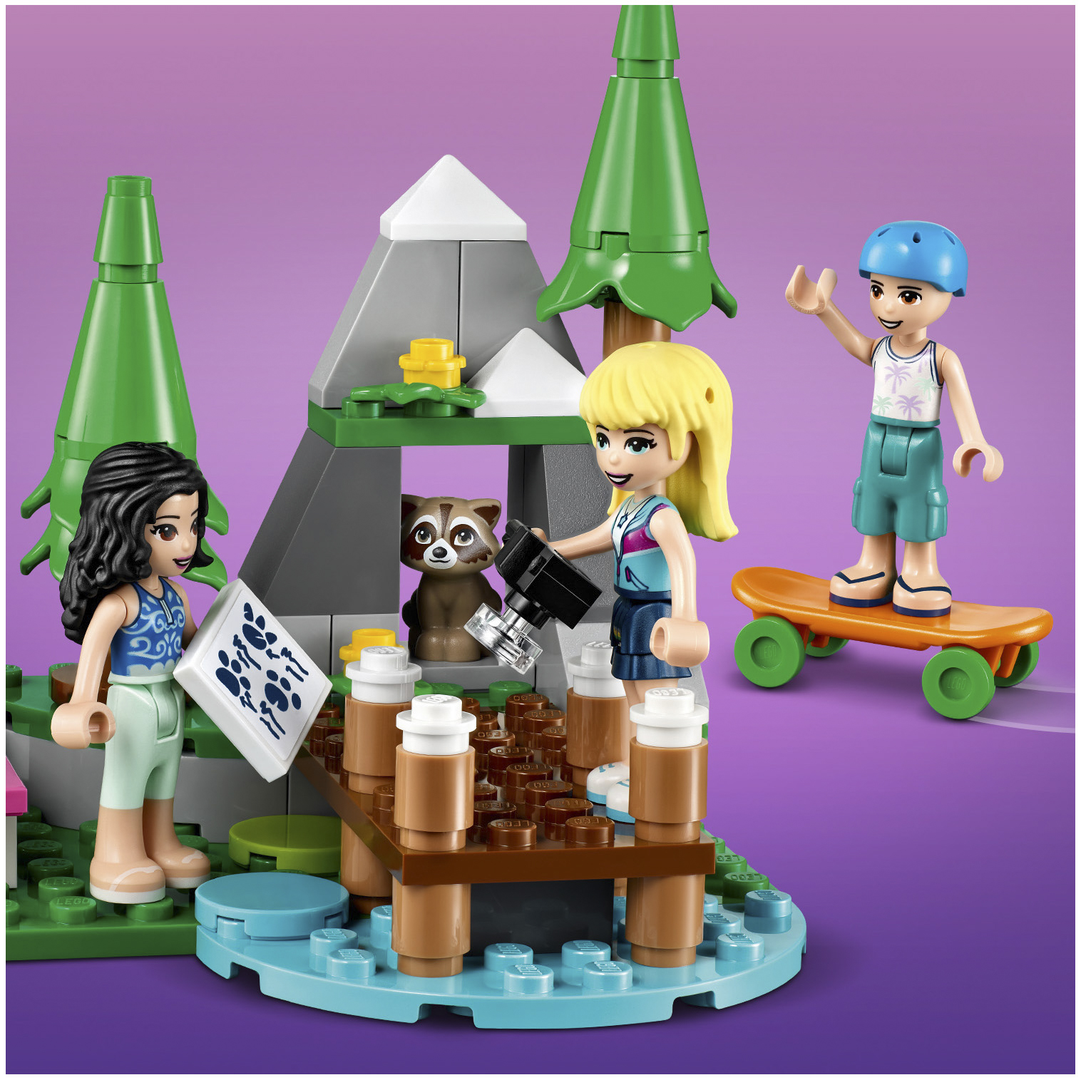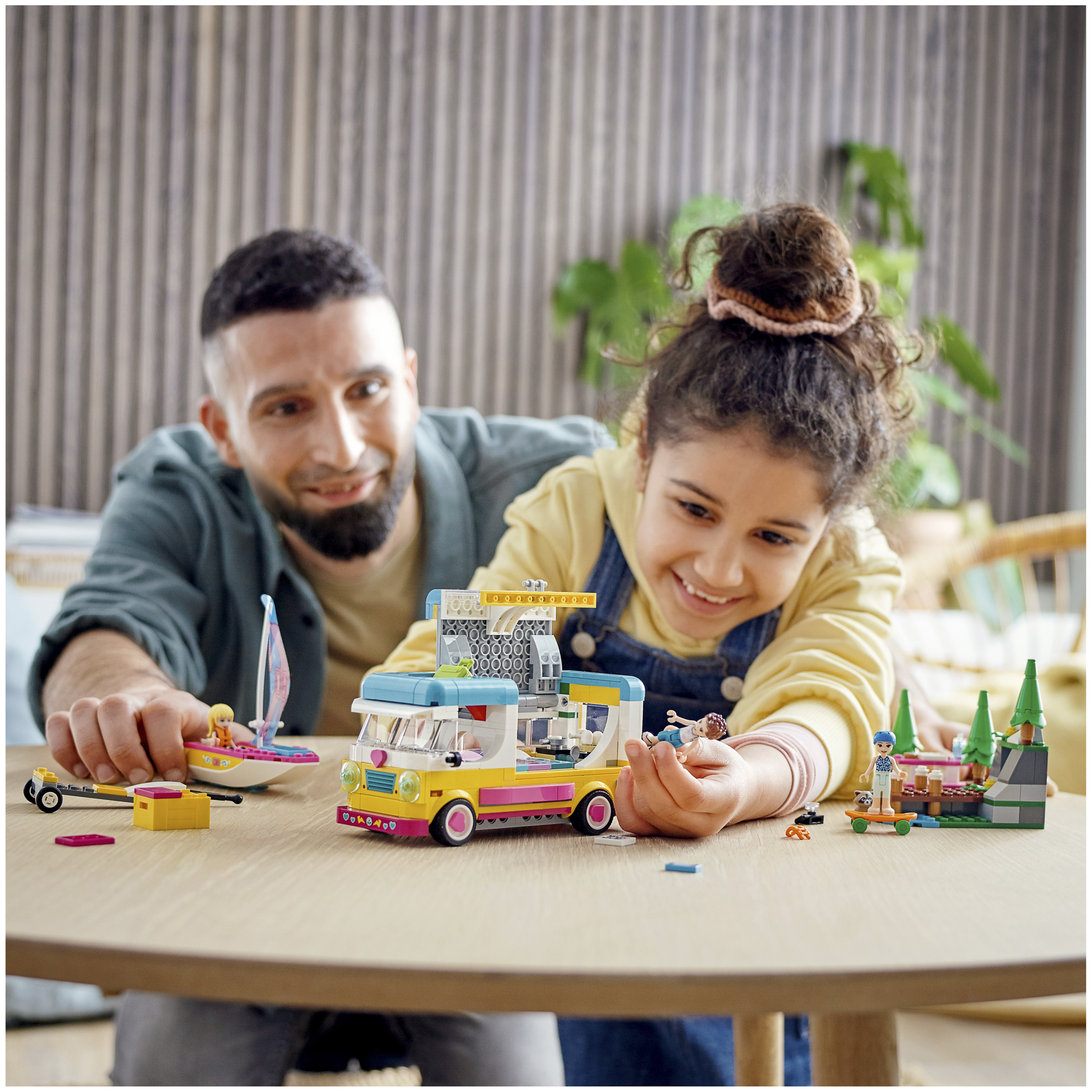 Ezzel a LEGO® Friends Erdei lakóautó és vitorlás 41681 készlettel a kis építők felfedezhetik a természet iránti szeretetüket. A szett telis-tele van funkciókkal, így a gyermekek szabadjára engedhetik kreativitásukat, miközben elmerülnek az órákig tartó, természetbeli játékban. A gyermekek felfedezhetik a színes és részletgazdag lakóautót, aminek a tetején egy kiegészítőkkel teli doboz vár rájuk, amit kipakolhatnak. Az elülső tető levehető, így a fiatalok könnyedén hozzáférhetnek a vezetőfülkéhez, a főtető pedig csuklópántos kialakítással készült, így egyszerűen kivehetik a hálózsákokat a szabadtéri kempingezéshez. A LEGO hajó tartalmaz egy kormánylapátot és mozgatható vitorlát a valósághű vitorlás kalandokhoz, emellett pedig egy szép, tavi és hegyi helyszín is vár rájuk, ahol leparkolhatnak, és felfedezhetik a vidéket. A fiatalok mindemellett még egy mosómedvével is összebarátkozhatnak.