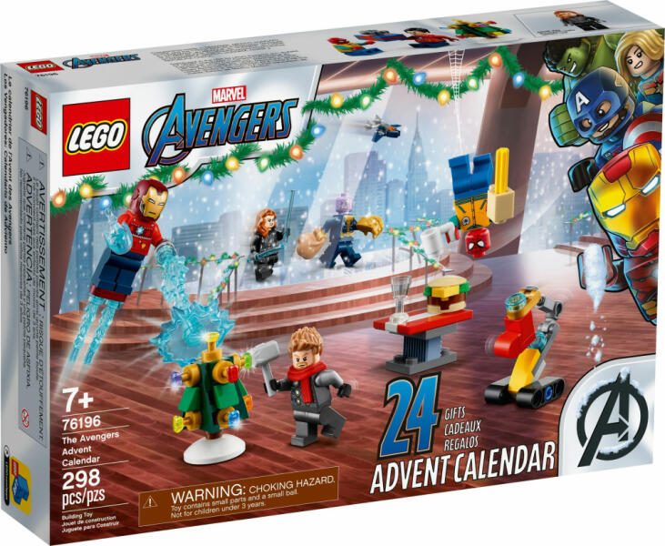 A naptár mind a 24 ajtaja mögött egy napi ajándékot tárhatnak fel a gyermekek decemberben, egészen karácsonyig. Tartalmaz 7 minifigurát – Vasembert, Pókembert, Fekete Özvegyet, Thort, Marvel kapitányt, Thanost és Nick Furyt –, valamint a Marvel Univerzumból ismert izgalmas tárgyakat és csodálatos kiegészítőket, amiket a gyermekek imádni fognak: egy Quinjetet, egy Helicarriert, Pókember drónját, a Bosszúállók Tornyot és sok minden mást. A nagy nap közeledtével a gyermekek variálhatják az ajándékokat, hogy végtelen, izgalmas szuperhőskalandokat alkossanak.