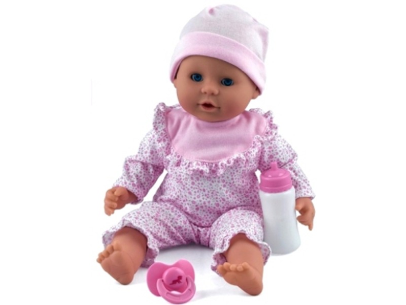 Vigyázz a Little Treasure babára! A virágmintávall díszített ruhás Little Treasure babzsákos baba egy kedves, puha műanyagból készült játékbaba babzsákkal töltve, cumisüveggel és cumival. Ha hanyatt fekteted, a baba lehunyja a szemeit és elalszik, a baba ruhája levehető. A Little Treasure babzsákos baba mintás ruhában együtt használható minden Dolls World 38 cm-es babakészlettel is, a játékbaba ölelgethető, és kedvedre gondoskodhatsz is jólétéről! Méret: 38 cm.