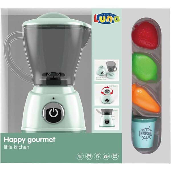 A játék turmix gép elengedhetetlen kelléke a játékkonyháknak és a szerepjátékoknak. A frissítő gyümölcs turmix egészséges és gyorsan elkészíthető, ezért a készletben műanyag gyümölcsök és egy műanyag pohár is megtalálható. A turmixgépről leemelhető a kancsó, ahogy az igazinak. A termék kétféle színben kapható. Az ár 1 db-ra vonatkozik, amelyet véletlenszerű változatban szállítunk. Mérete: 29,3 x 11,5 x 6,8 cm. Tartalom: A játék elemmel működik (2 db AA). Az elemek nincsenek benne a csomagban.