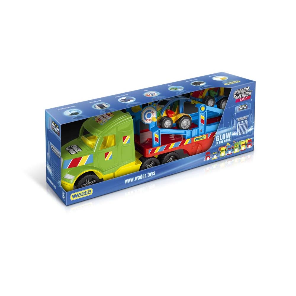 Lépj be a sötétben világító mágikus teherautók világába! A Wader Magic Truck Base sorozat valósághű megjelenésével és egyediségével varázsolja el a munkagépek szerelmeseit. A teherautók és munkagépek mozgatható elemei színesítik a játékélményt. Az építkezést és szállítási munkálatokat a jármű fluoreszkáló lámpái még érdekesebbé teszik és serkenti a fantáziát. Mérete: 78 cm. Tartalom: Magic Truck Basic – kamion buggy autókkal – Magic Truck Basic – betonkeverő
