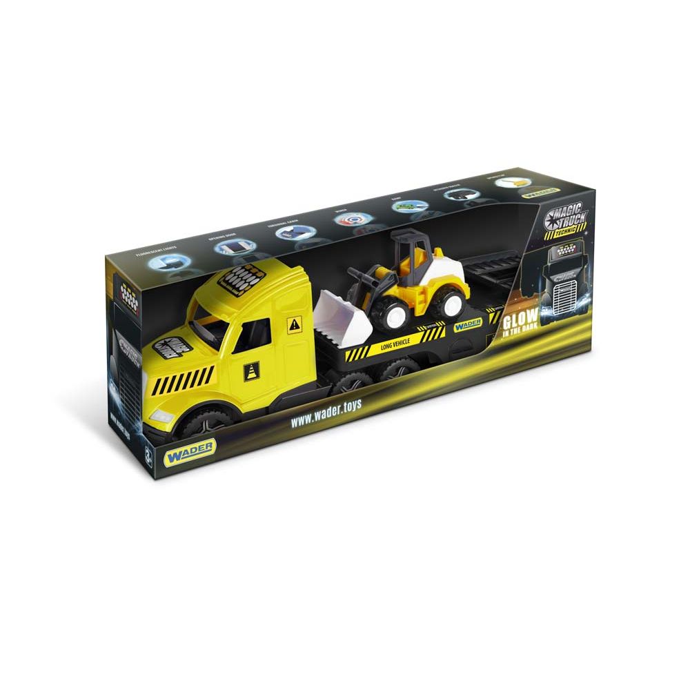A Wader Magic Truck sorozata valósághű megjelenésével és élénk színeivel varázsolják el az autók szerelmeseit. Az óriás teherautókra pótkocsit csatlakoztathatnak és elszállíthatják az építőanyagokat a játék során. Fejleszti a szem-kéz koordinációt, a képzelőerőt és motoros készségeket. A fluoreszkáló lápák pedig serkentik a képzelőerőt és a kíváncsiságot. A kamion hossza: 80 cm. Tartalom: Wader -Magic Truck Technic – kamion buldózerrel – világit a sötétben